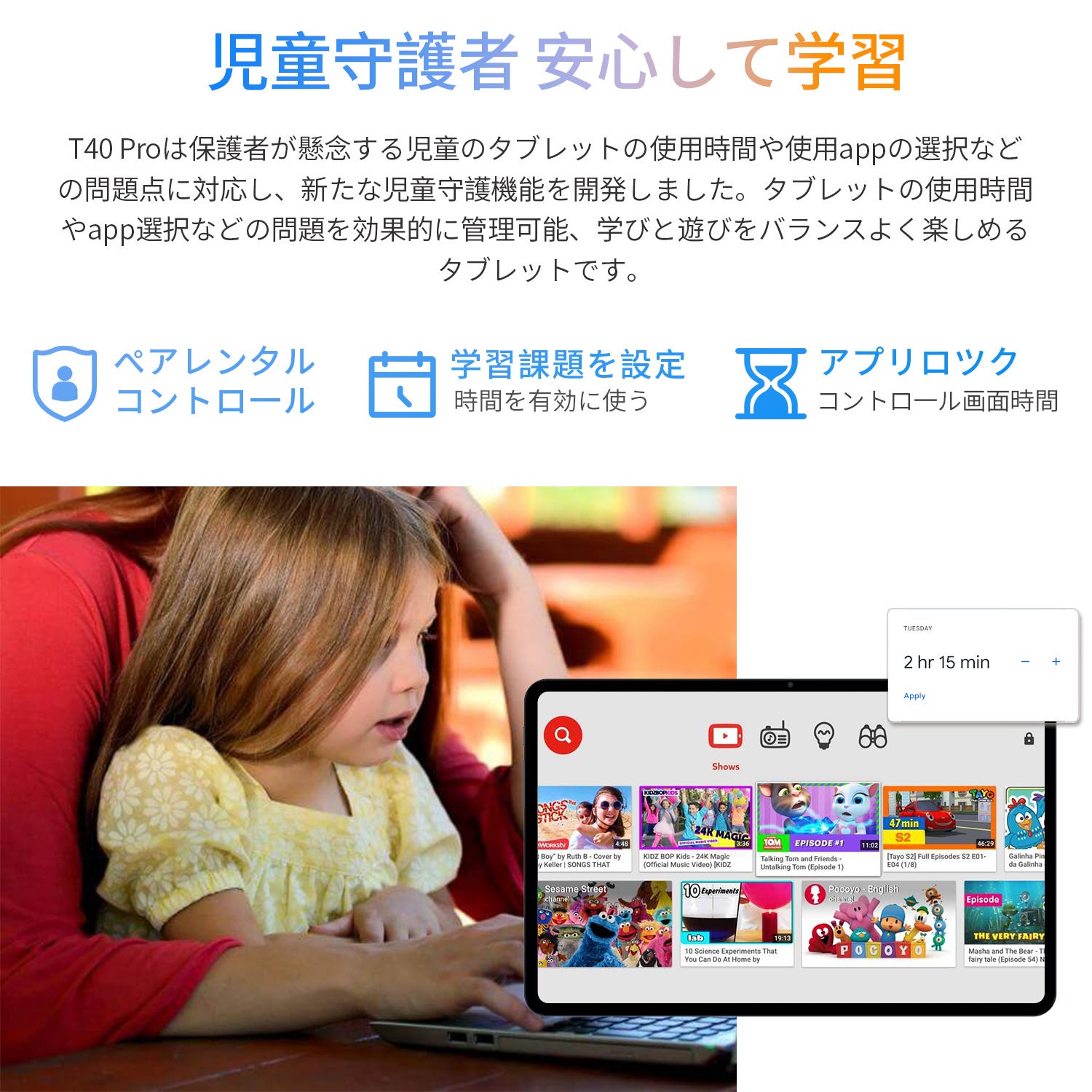 T40 Proタブレットは7000mAh大容量バッテリーと優れたマネジメントによる長時間利用を実現、動画視聴、ゲーム、電子書籍、音楽など時間を気にせずたっぷりお楽しみいただけます。USB-C接続で充電が便利、充電スピードを速くなります。18W USB-PD急速充電をサポートしている。