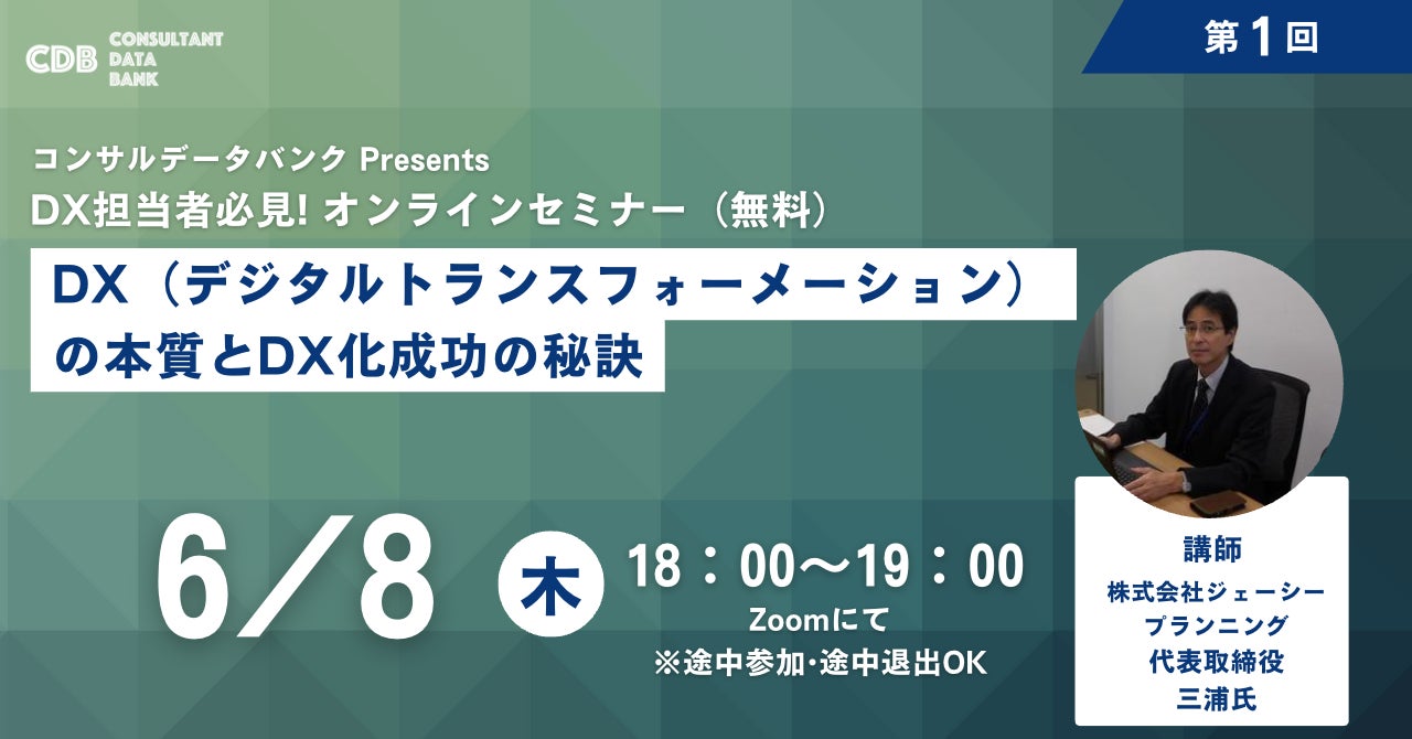 KICK ZA ISSUE株式会社(本社:神奈川県横浜市)は『 ~ コンサルデータバンク Presents ~ DXの本質とDX化成功の秘訣 』無料オンラインセミナー(Zoom)を行います。