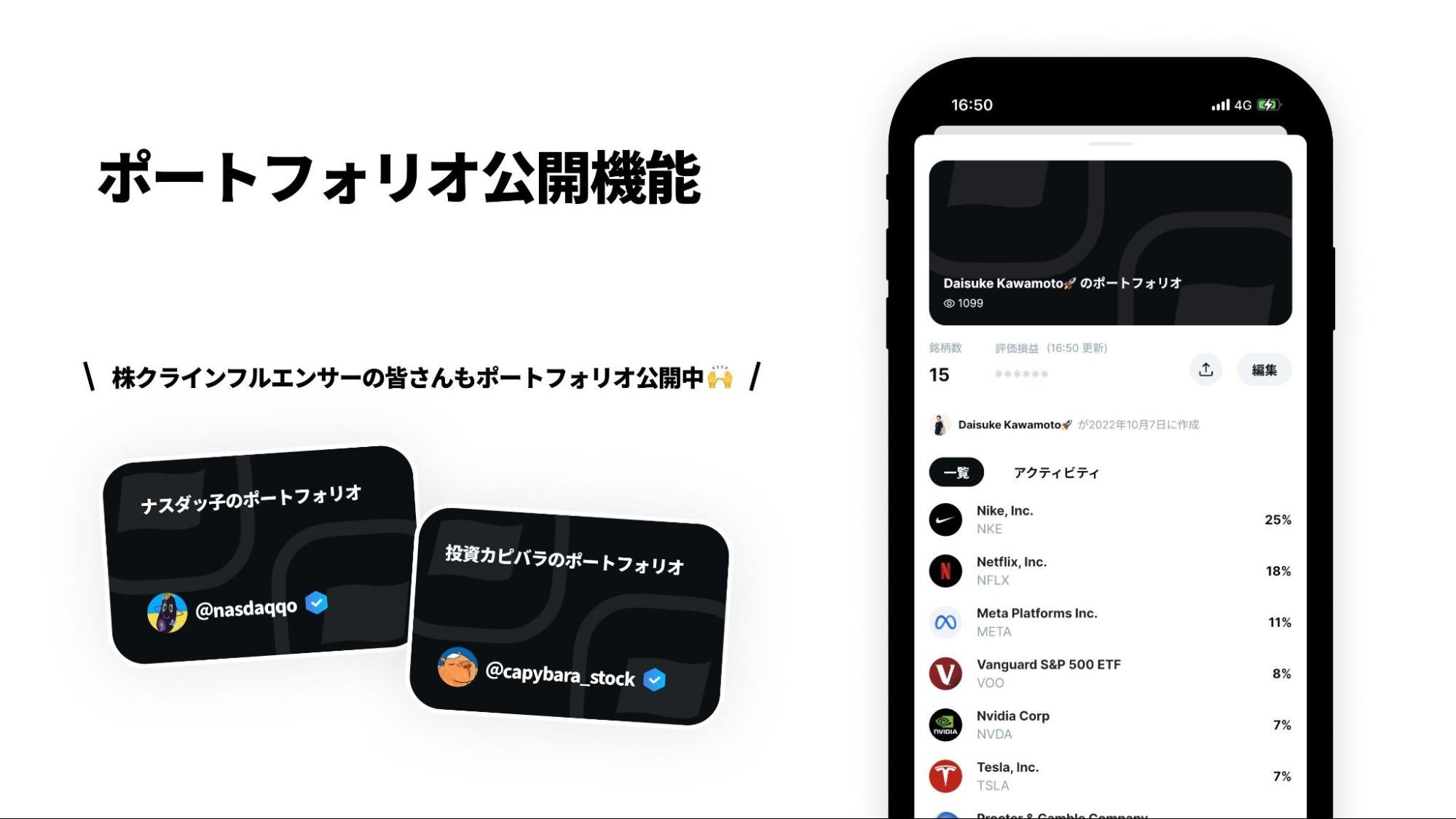 ローンチ以来、多くのユーザー様にご利用いただき、タイムライン上でのたくさんのアプリへのフィードバックをいただいております。みなさまと一緒に作っていくSNS型株式投資アプリとして、今後も機能の開発、改善を続けて参ります。