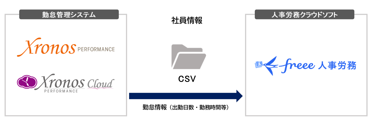 『クロノスPerformance(及び、クロノスPerformanceクラウド)』に登録された、給与計算に必要な勤怠集計データを『freee人事労務』に取り込み可能なフォーマット(CSVファイル)で、出力できるようになります。今回のCSV連携により、システムごとに入力する手間の削減や入力・修正ミスを低減し、業務効率化を支援します。『freee人事労務』とのCSV連携機能は『クロノスPerformance』『クロノスPerformanceクラウド』システム更新Rev.3.30以降からご利用いただけます。