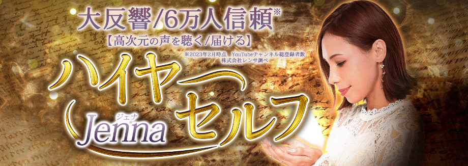 チャンネル登録者数7万人以上、ハイヤーセルフについての投稿動画は常に平均4万回再生・総再生数2000万回超え(2023年5月時点)の爆発的人気を誇るスピリチュアリスト『Jenna』。守護霊(ハイヤーセルフ)の声を聴き、特別なメッセージタロットを介してあなたの運勢、あの人の秘める本音や願望を明らかにしていきます。