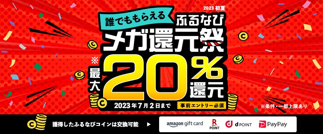 2022年、「ふるなび」は寄附者へのふるさと納税の認知啓蒙およびサービス利用満足度の向上を目的として、寄附額に応じてもらえる「ふるなびコイン」の交換先を拡充し、AmazonギフトカードやPayPay残高※、dポイント※2、楽天ポイント※3に交換可能になりました。引き続き、ふるさと納税者及び契約自治体の、「ふるなび」サービス利用満足度の向上を目指してまいります。