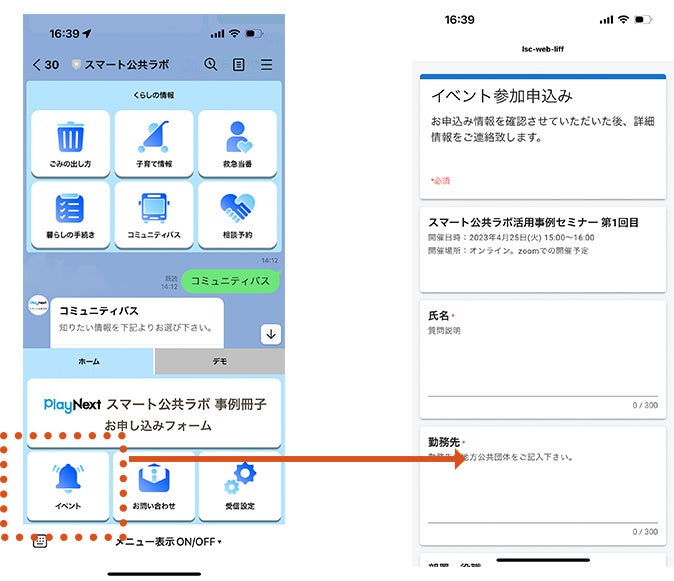 スマート公共ラボは、役所での各種窓口業務や、お問い合わせ対応をLINEで完結でき、業務の効率化と住民の利便性向上させる行政DXソリューションです。