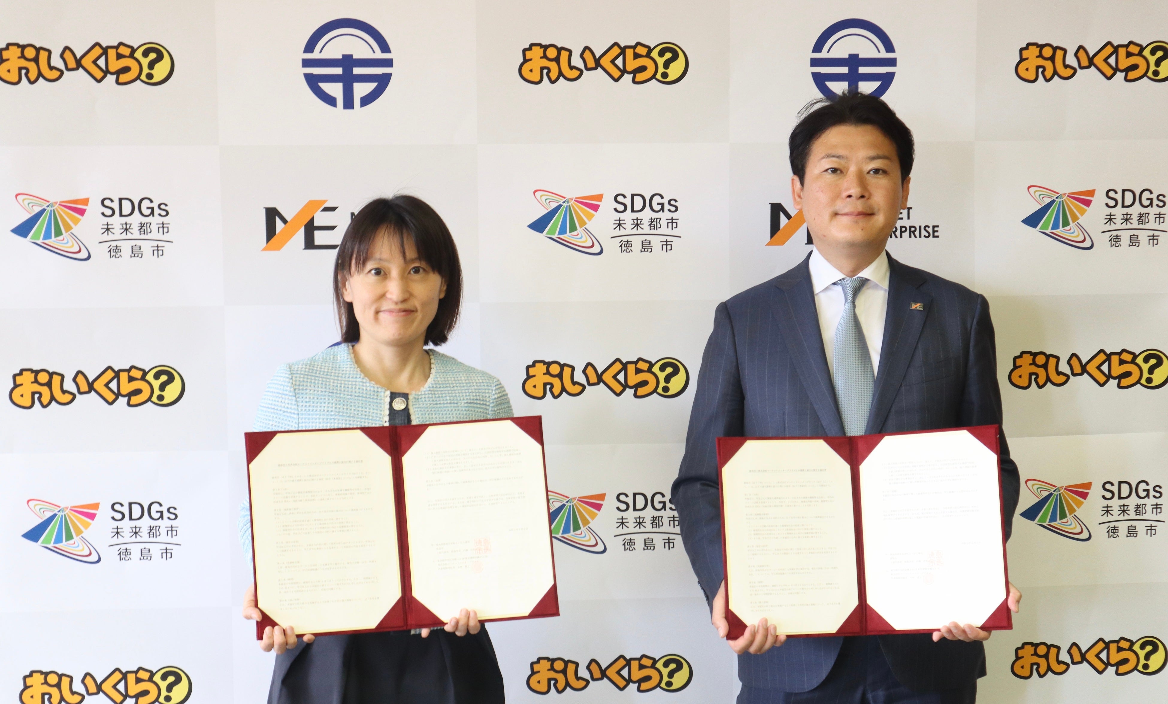 徳島市では、「燃やせるごみ」の名称を「分別頑張ったんやけど、燃やすしかないごみ」に変更するなど、これまで廃棄物減量に向けて精力的に取組んできました。加えて、不用品活用銀行の運営や、民間企業との取組などのリユース施策も積極的に行なっています。しかしながら、昨今、市民の不要品処分のニーズは多様化しており、徳島市では、不要品処分方法の選択肢を増やすことで、市民生活へのリユース浸透がより一層期待できると考えておりました。他方、マーケットエンタープライズは、リユース事業を中心に事業展開しており、「持続可能な社会を実現する最適化商社」をビジョンに掲げ、「地方創生SDGs官民連携プラットフォーム」への参画や、「楽器寄附ふるさと納税」実行委員会の一員として活動を続けるなど、官民の垣根を超えたSDGsへの取組に注力してまいりました。加えて、徳島市の企業誘致制度を使って徳島市内にオフィスを開設し、地元の雇用を創出するなど、地域に根差した事業展開を行なってまいりました。このような背景の下、廃棄物削減やリユースに精力的に取組む徳島市へマーケットエンタープライズが働きかけ、「リユース活動促進による循環型社会の形成を目指したい」という互いのニーズが合致したため、「おいくら」※1を用いた今回の取組が実現しました。