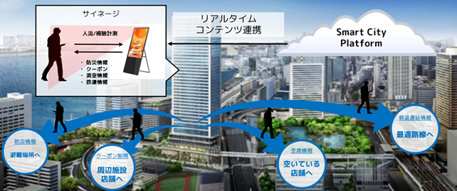 東急不動産とソフトバンクは、「Smart City Takeshiba」として、竹芝地区で収集した人流データや訪問者の属性データ、道路状況、交通状況、水位などのデータをリアルタイムでさまざまな事業者が活用できるデータ流通プラットフォームや、先端技術を活用したサービスなどを竹芝地区に実装することで、回遊性の向上や混雑の緩和、防災の強化などを実現し、竹芝および周辺地区の課題を解決に向けて取り組むとともに、分野を横断したサービスによって、地区の経済的発展と付加価値の創出を目指しています。