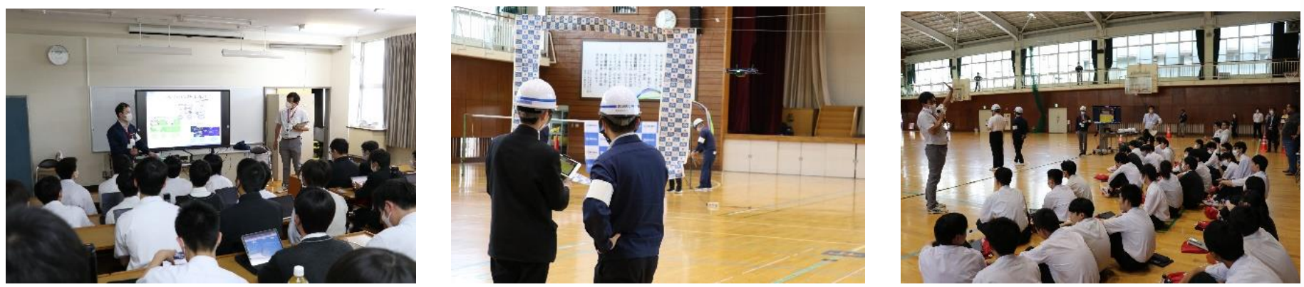 このたび、市川工業高校の卒業生がNTT東日本グループで活躍している縁もあり、同校とNTT東日本が連携して、学校では学ぶことができない企業や実社会での最新のドローン活用事例、プログラミングを通じた自動飛行や追跡撮影等の体験授業を実施することで、ICT(情報通信技術)教育の実践及び地域におけるデジタル人材の育成サポートを行いました。