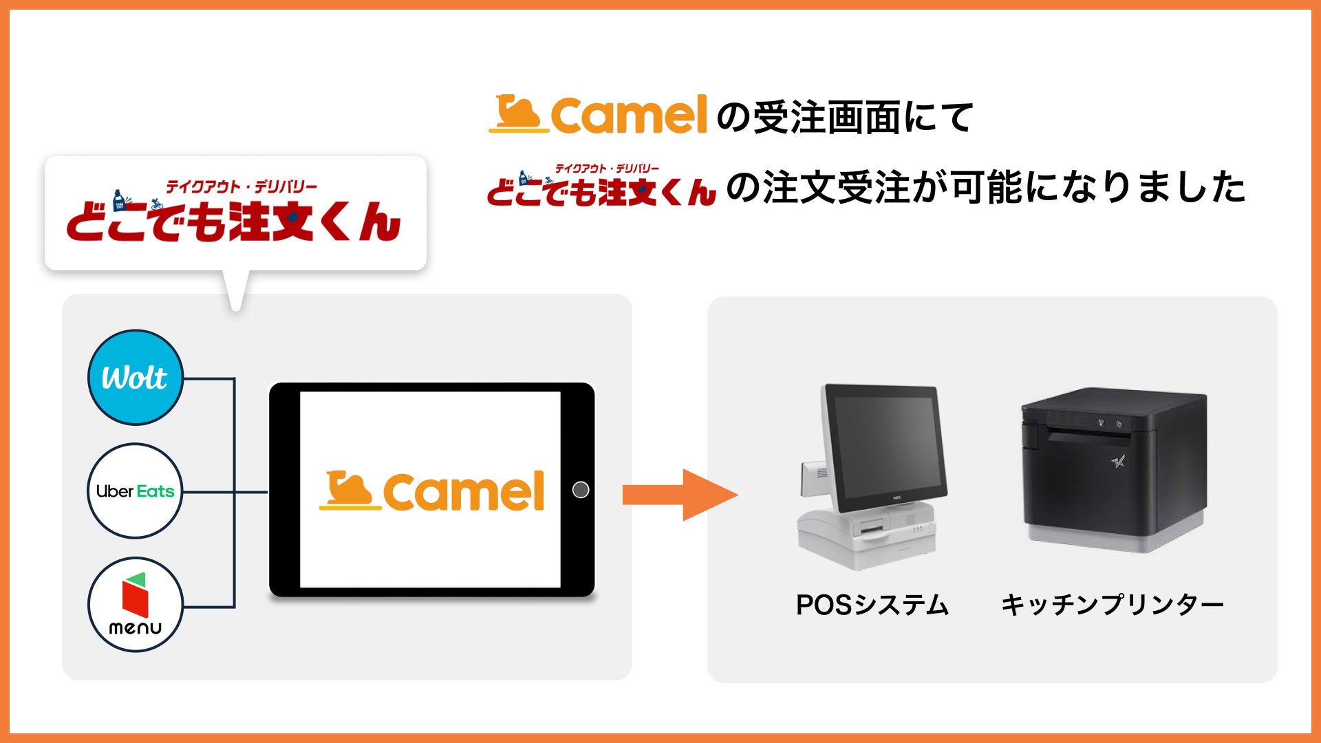 しかし、今回の連携により『どこでも注文くん』で受けた注文についても、他のデリバリー・テイクアウトサービスと同様に『Camel』の画面上で管理可能になりました。