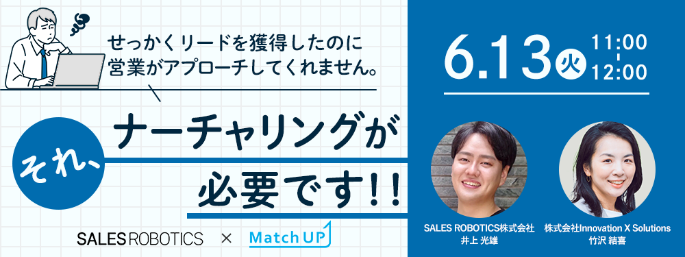 (本社:東京都渋谷区、代表取締役社長:遠藤俊一、以下「Innovation X Solutions」)は、「せっかくリードを獲得したのに営業がアプローチしてくれません。それ、ナーチャリングが必要です!!」をテーマとした共催セミナーを