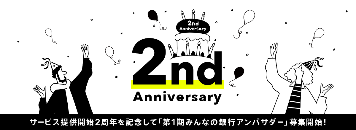 2023年5月28日でサービス提供開始2周年を迎えたみんなの銀行のこれまでを数字で振り返ります。