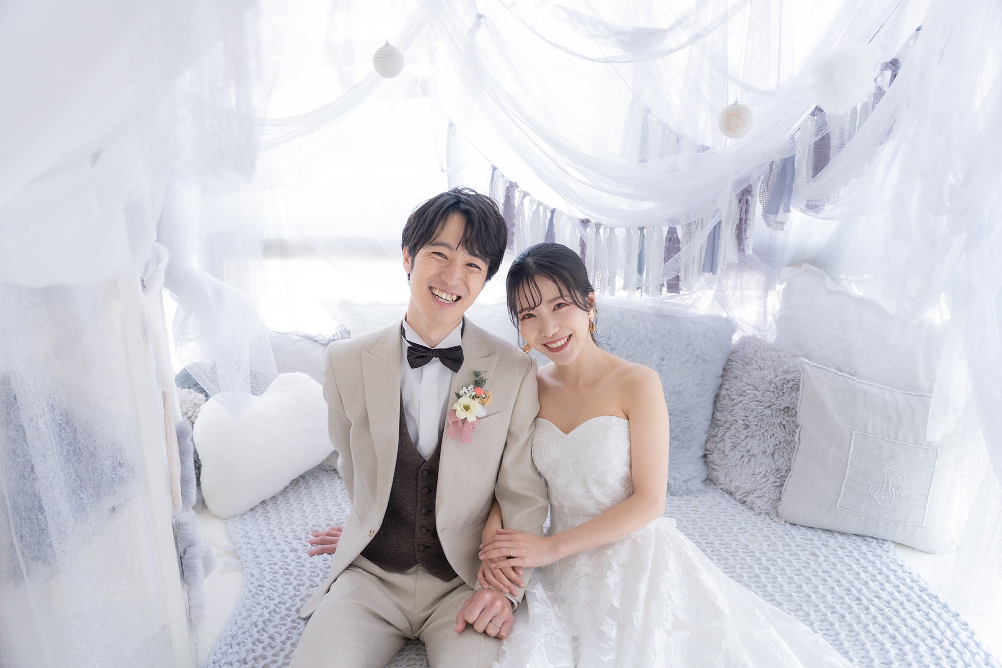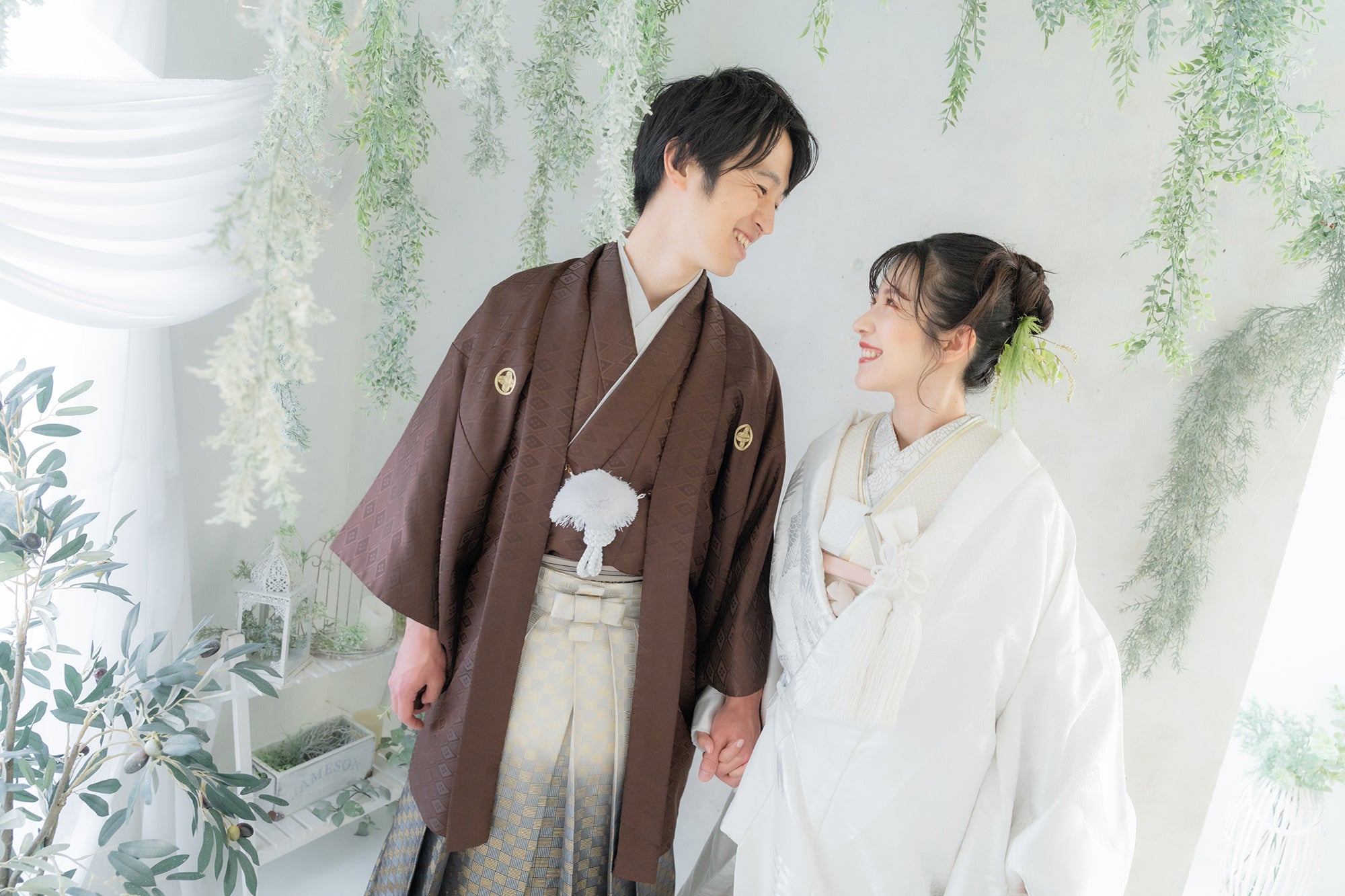 鎌倉大船店には、全6面のスタジオがございます。自然光が降り注ぐ、やわらかでほっとする雰囲気の明るい店内では、幻想的な白の空間や、あたたかみのあるドライフラワーやアンティークを配したスタジオ、おふたりの存在感が際立つシンプルな背景など、バリエーション豊富な撮影が可能です。鎌倉湘南エリアの王道和装や海ロケーション撮影とは全く異なる雰囲気で、スタジオ撮影をお楽しみいただけます。