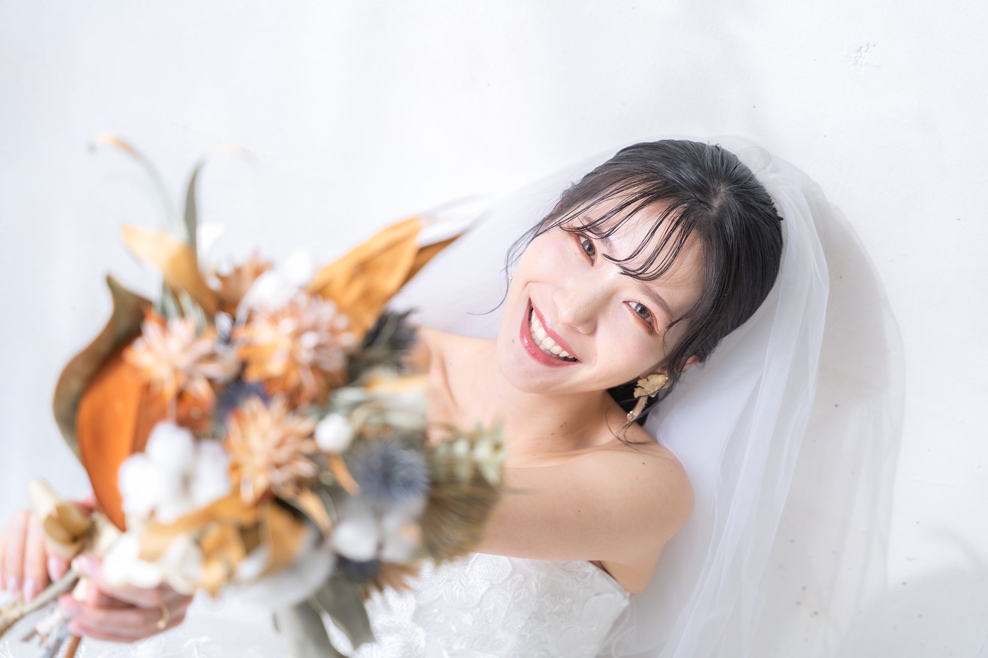 ・撮影一式(新婦へアメイク・着付け・小物一式・ブーケ&ブートニア(洋装の場合)・アクセサリー・スタジオ使用料・ 写真撮影)
