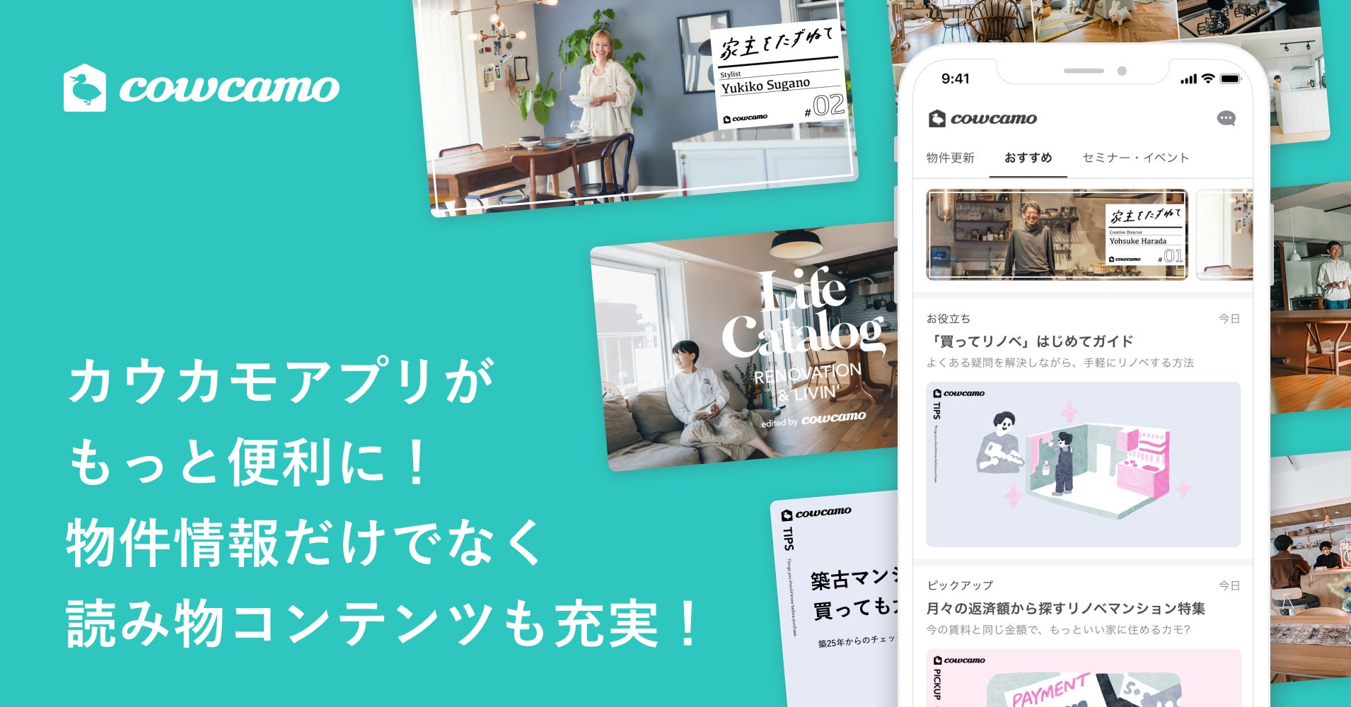 カウカモのお客さま事例や街情報を中心に、これまで「カウカモマガジン」に掲載していた情報をカウカモアプリでも順次配信する
