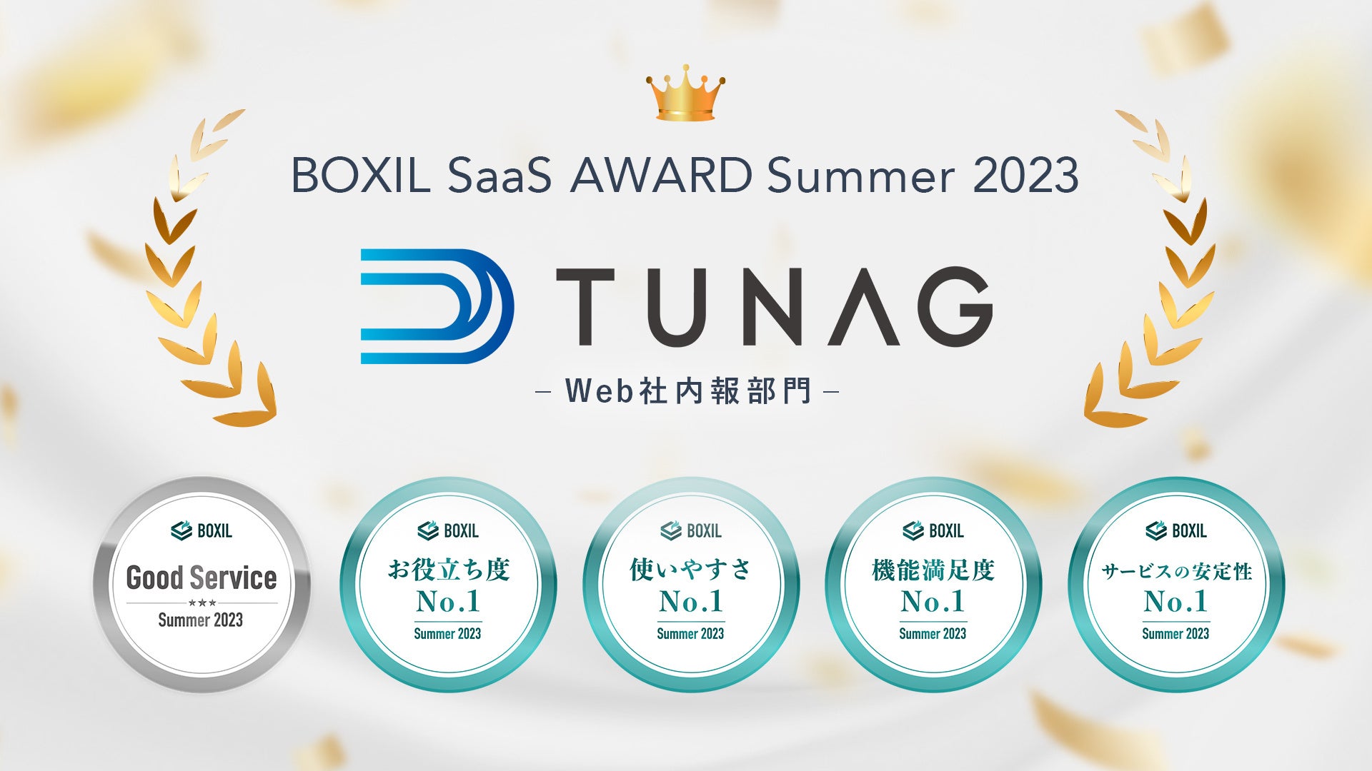 今回、TUNAGは、「サービスの安定性No.1」「機能満足度No.1」「お役立ち度No.1」「使いやすさNo.1」にて受賞いたしました。