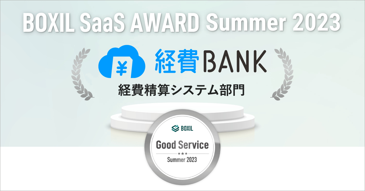 「BOXIL SaaS AWARD(ボクシル サース アワード)」は、スマートキャンプが運営するSaaS比較サイト「BOXIL SaaS」が優れたSaaSを審査、選考、表彰するイベントです。今回の「BOXIL SaaS AWARD Summer 2023」は、2022年4月1日から2023年3月31日までの1年間で新たに投稿された口コミ約16,000件を審査対象としており、「経費BANK」は経費精算システム部門で「Good Service」を獲得しました。また、その証となる「Good Serviceバッジ」がスマートキャンプから付与されました。