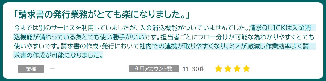 - 「請求QUICK」をご利用中の事業者様からのお声を一部ご紹介