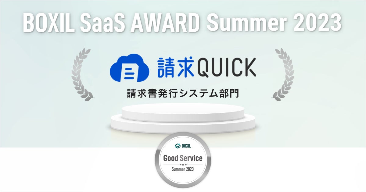 総合フィンテックソリューション企業であるSBI FinTech Solutions株式会社の子会社で、バックオフィス支援サービスを提供するSBIビジネス・ソリューションズ株式会社(本社:東京都港区、代表取締役社長:夏川 雅貴、以下「当社」)は、月額無料から使えるクラウド型請求書発行システム「請求QUICK」が、スマートキャンプ株式会社 (本社:東京都港区、代表:林 詩音、以下「スマートキャンプ」)が今最もユーザーに評価されているSaaSを表彰する「BOXIL SaaS AWARD Summer 2023」の請求書発行システム部門において、「Good Service」を獲得しましたのでお知らせいたします。