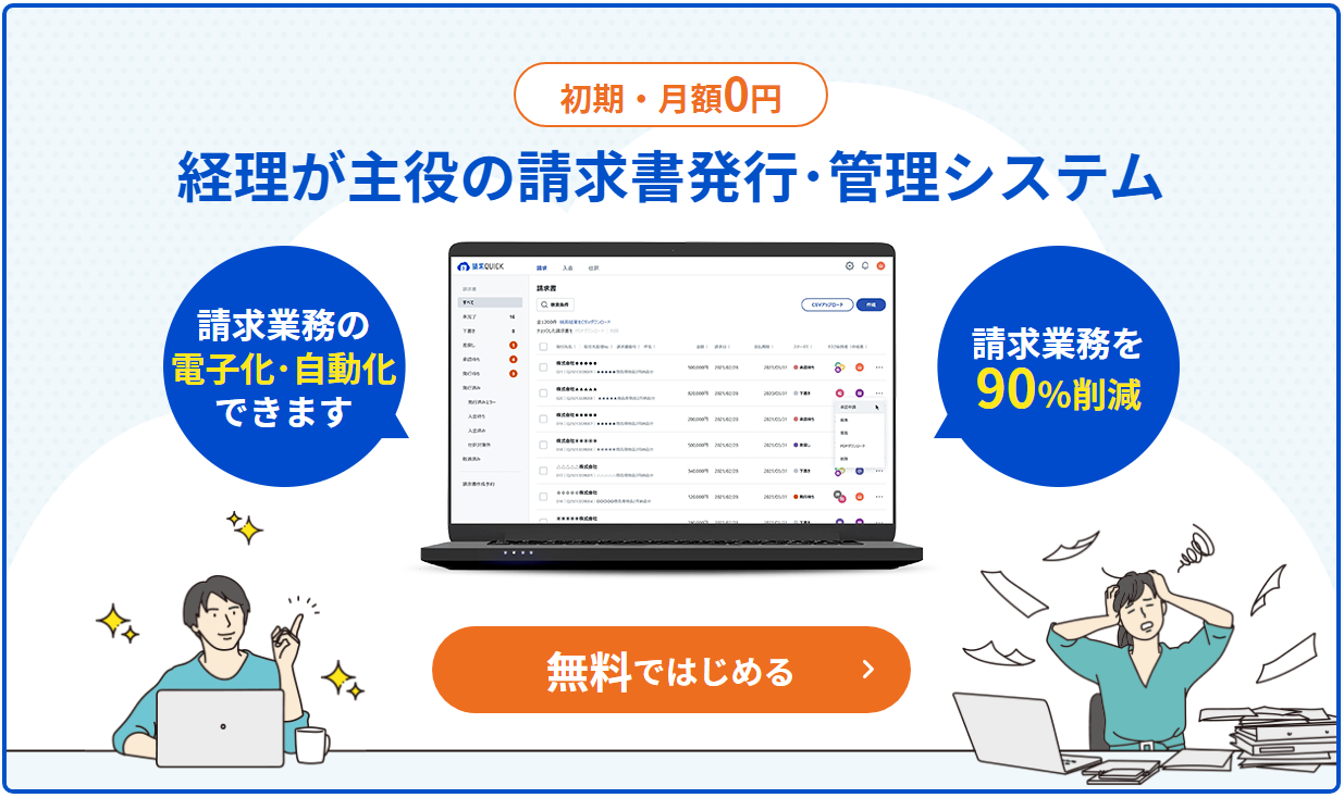 - 「請求QUICK」は月額無料から使える中小企業のためのインボイス制度・電帳法対応ツール