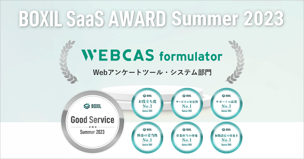 本イベントのWebアンケートツール・システム部門において「WEBCAS formulator」は、以下の通り表彰されました。