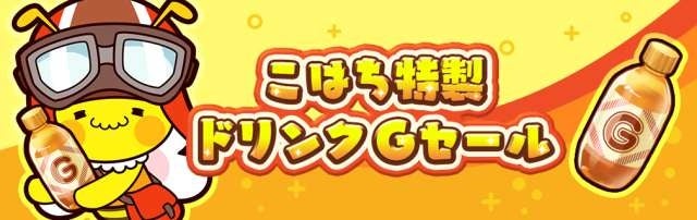 本日7月8日(金)より、ハニプレ内の交換所にて『こはち特製ドリンクGセール』を開催いたします。ゲリラライブへゲスト参加する際に必要な「ゲリラパス」が不足したら「こはち特製ドリンクG」を手に入れて消費した「ゲリラパス」を回復させましょう!