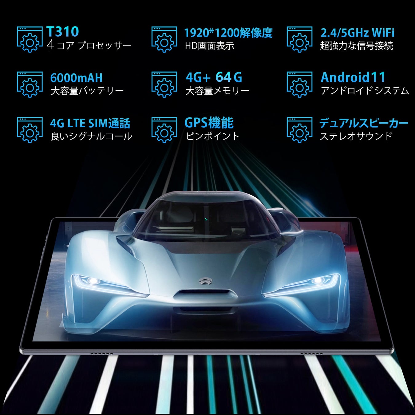 【高性能4コアCPU+4GBRAM+64GBROM+高性能プロセッサ】タブレットUNISOC T310セッサを搭載しています。12nmプロセスルールを利用して製造されUNISOC T310は、高性能な「A75(2.0Ghz)」コアと三つの高効率な「A55」コアを搭載し、AnTuTu実行ポイントも150,000を超えます。安定性が高くスムーズな処理を実現し操作がサクサクスピーディーに行えます。