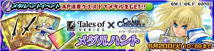 なお、「テイルズメダル」と交換で豪華報酬が獲得できる“『テイルズ オブ』シリーズコラボ&9.9周年記念!メダルハントイベント”は、6月8日(木)11:00より開催されます。