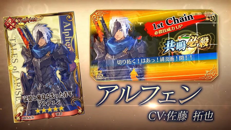 SSR「記憶と痛覚を失った青年 アルフェン」をはじめとする、『テイルズ オブ』シリーズのコラボキャラクターが登場するコラボフェス第1弾を開催! SSRは必ずコラボキャラクターが登場します。