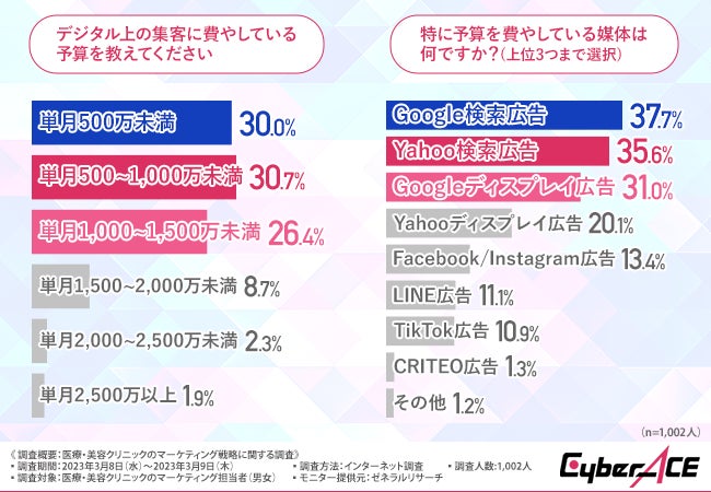 そこで今回、株式会社CyberACE(https://cyberace.co.jp/)は、医療・美容クリニックのマーケティング担当者を対象に、医療・美容クリニックのマーケティング戦略に関する調査を実施しました。