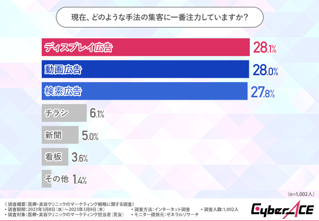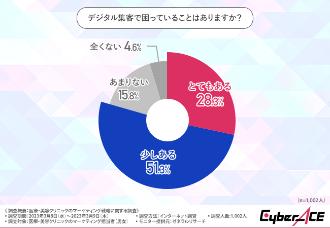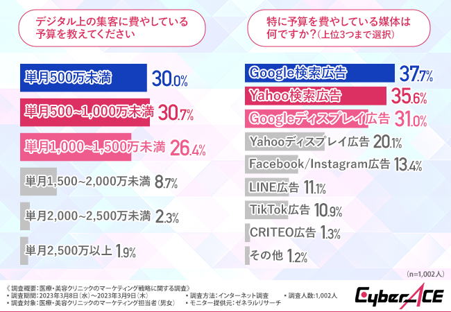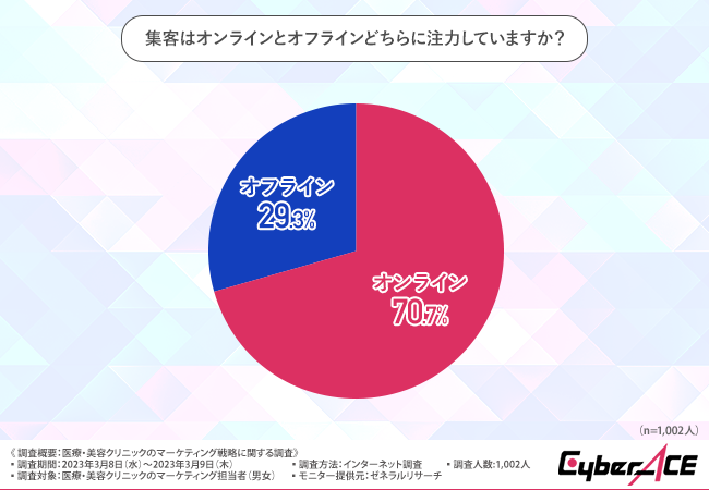 そこで今回、株式会社CyberACE(https://cyberace.co.jp/)は、医療・美容クリニックのマーケティング担当者を対象に、医療・美容クリニックのマーケティング戦略に関する調査を実施しました。