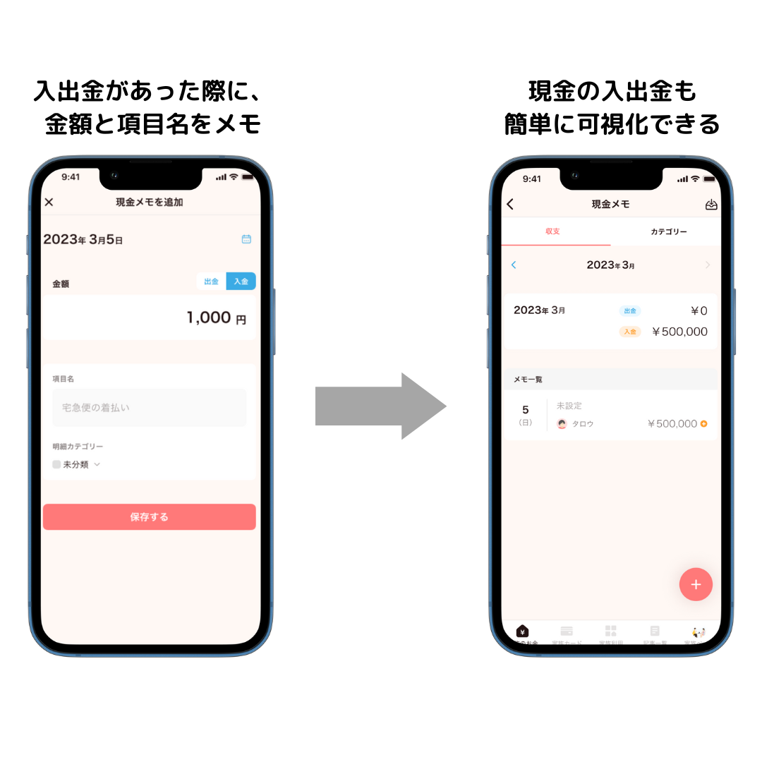 「現金メモ」機能で現金の支払い履歴を簡単に記録確認