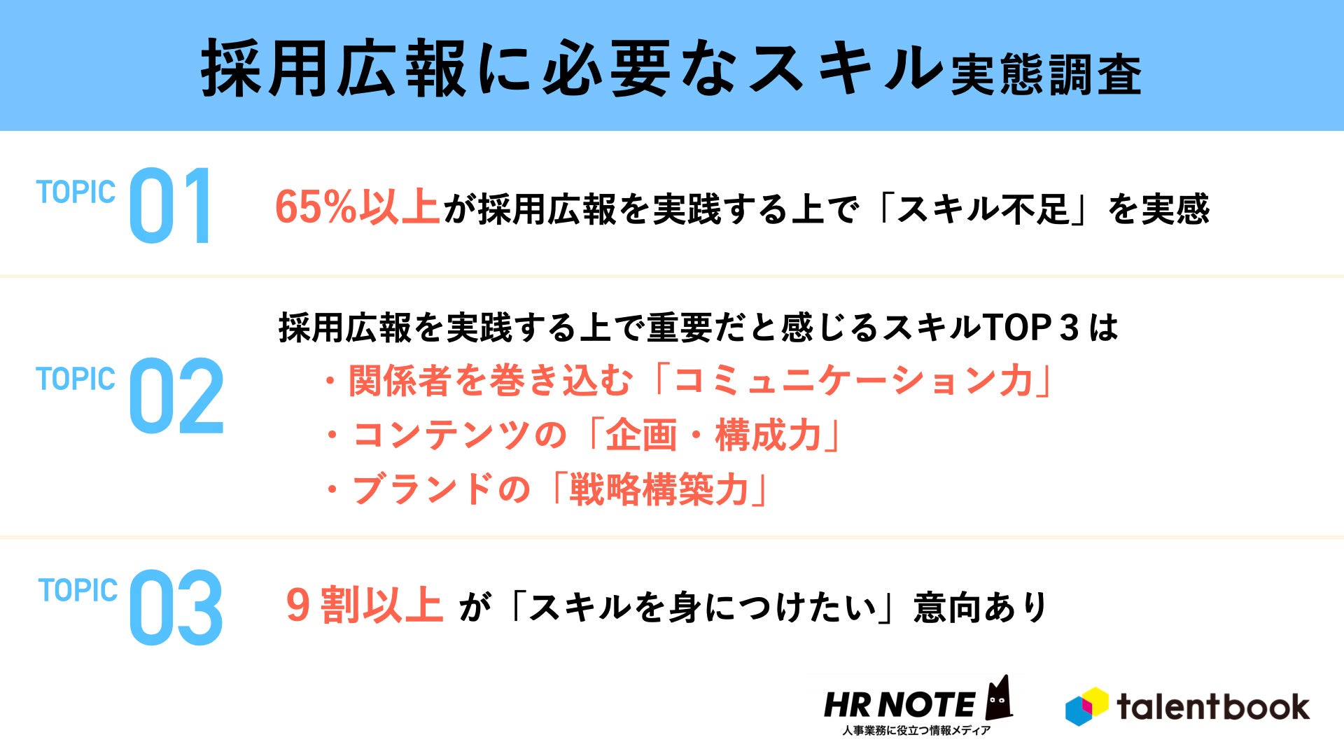 昨今、採用市場の競争の激化を背景に、自社の採用競争優位性を確保するため、採用広報に取り組む企業が増えています。そこで今回、jinjer株式会社が運営する人事向けメディア「HR NOTE」は、PR Tableと共同で、これからの人事は採用広報を実践するうえで「どのようなスキルをインストールしていくべきか」そしてスキルを身につけた担当者は「どのように採用活動を改善できたのか」という「人事に求められるリスキリング」をテーマに、アンケート調査を実施いたしました。