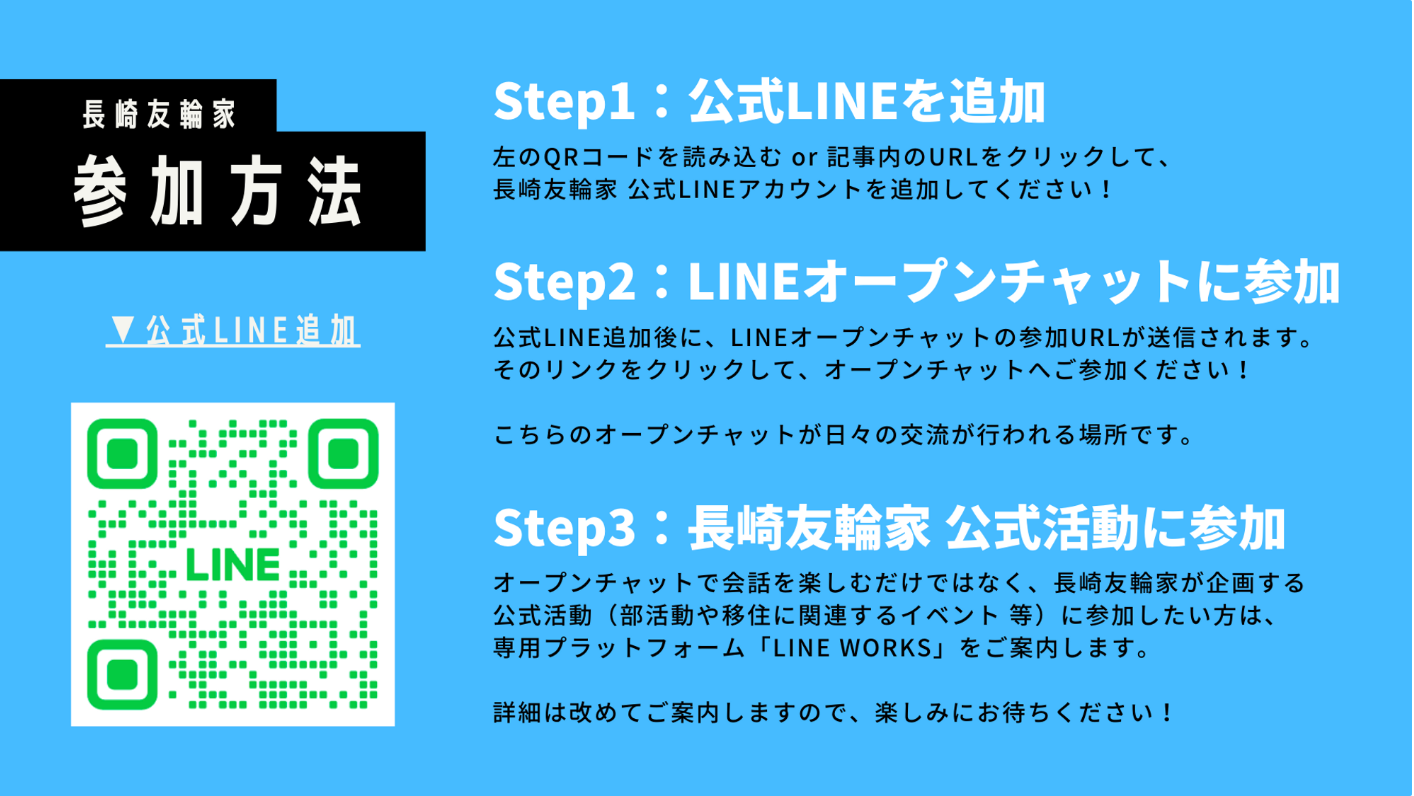 長崎友輪家 LINE公式アカウント 友だち登録:https://lin.ee/8Ujd4Vo
