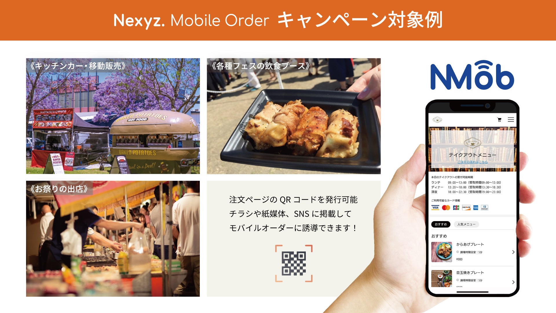 このキャンペーンは、より多くの企業様、店舗運営オーナー様に『Nexyz.Mobile Order』を知っていただき、通常の店舗運営にもご活用いただくきっかけになることを目的とします。