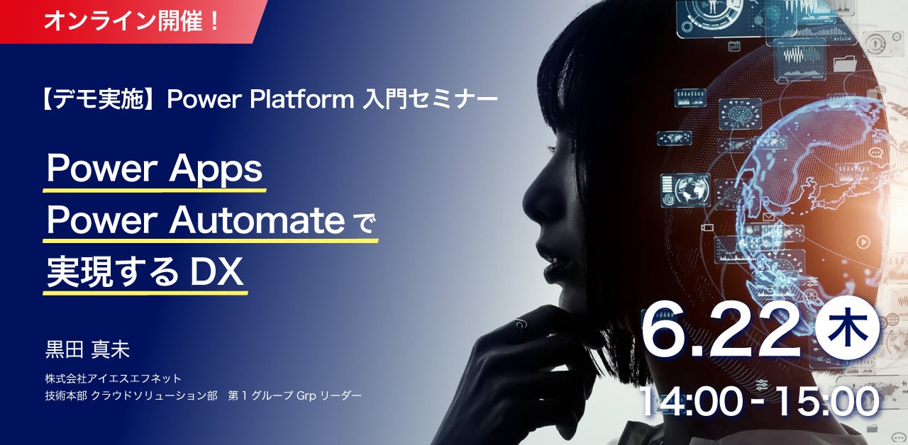 6/22_【デモ実施】Power Platform 入門セミナー ~Power Apps/Power Automateで実現するDX~ 本セミナーでは、「Power Apps」「Power Automate」をこれから学ばれる方、自分で開発にチャレンジしてみたい!、という方に向けて、“業務効率化“をテーマに、サービスの概要からアプリの作成方法、Power Platformを利用する際に気になるライセンス形態についてご紹介します。 |