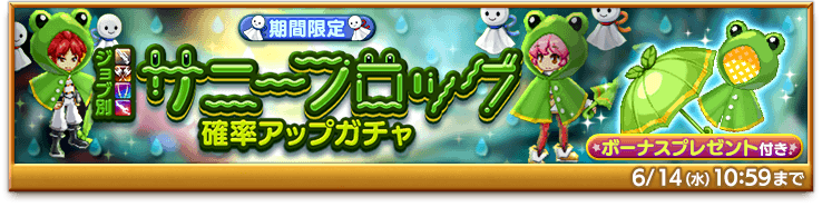 ■強力なフィニッシュブローで気分も晴れやかに!「ジョブ別 サニーフロッグ確率アップガチャ」販売中!
