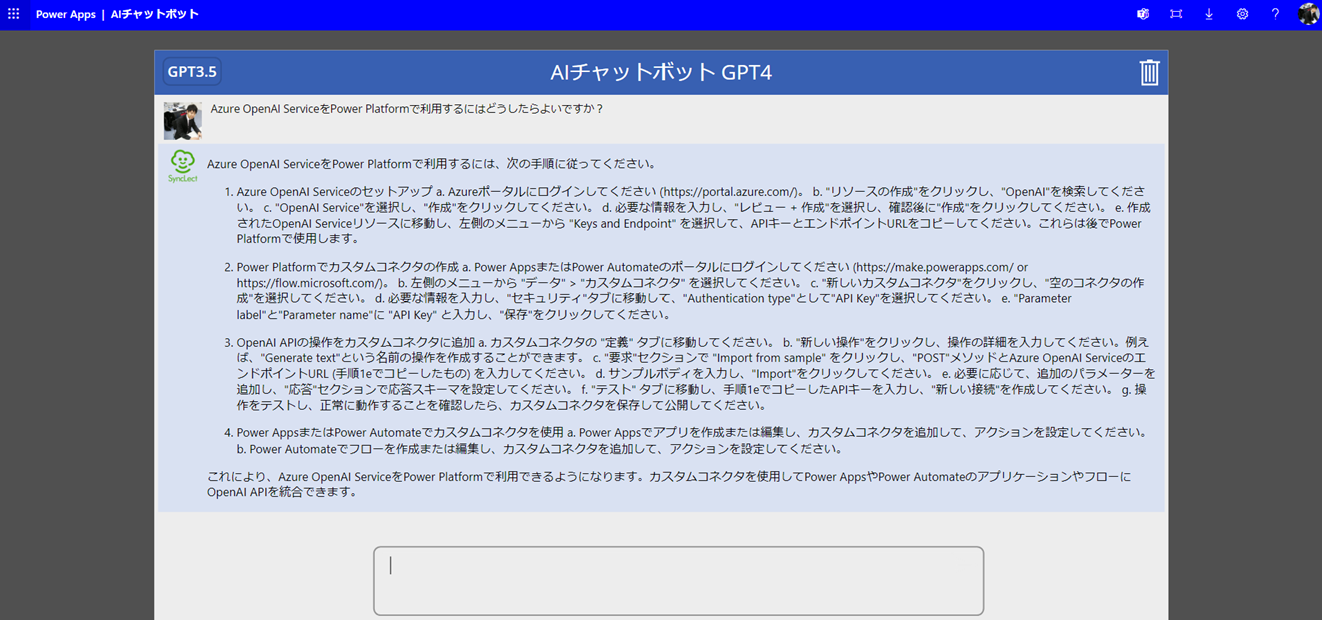 サンドボックス感覚でGPT3.5、業務利用時はGPT4を使うなどシーンに合わせて自由に変更。