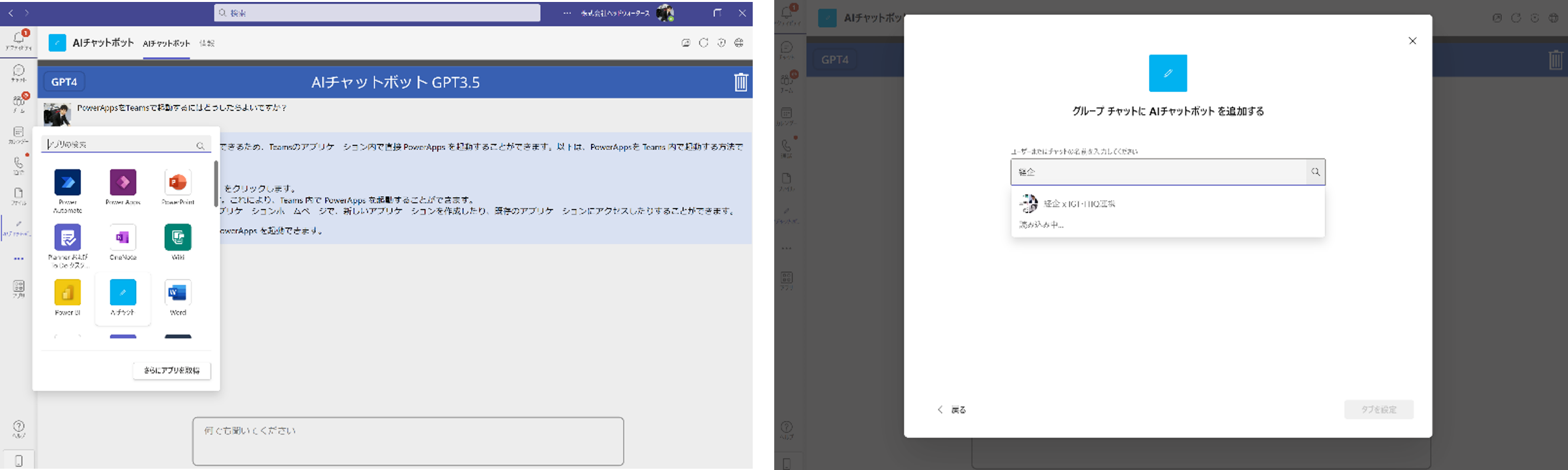 専用PowerAppsは365メニューに出現 Teamsのチャネルやチャットでタブ追加可能
