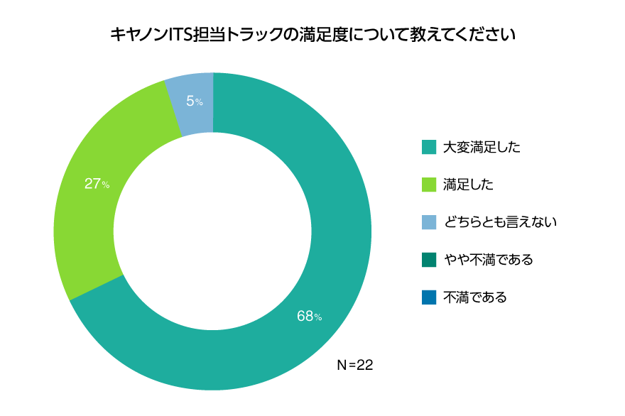 今回の参加者に対し、2日目の講義終了後アンケートを実施しました。回答者22名の内、約95%の参加者が「大変満足」、「満足」と回答しました。演習を通じて本物のマルウェアの解析を行ったこと、さらに現場で働いている講師の話が興味深く感じられたことなどが、高い満足度につながりました。また講義の理解度については、全ての参加者が「非常に分かりやすかった」、「分かりやすかった」と回答しました。講師の分かりやすい資料を用いた丁寧な説明や、全ての演習後に実施した詳しい解説など、これまで培った人材育成のノウハウを通じた取り組みが、結果に反映されたと考えています。