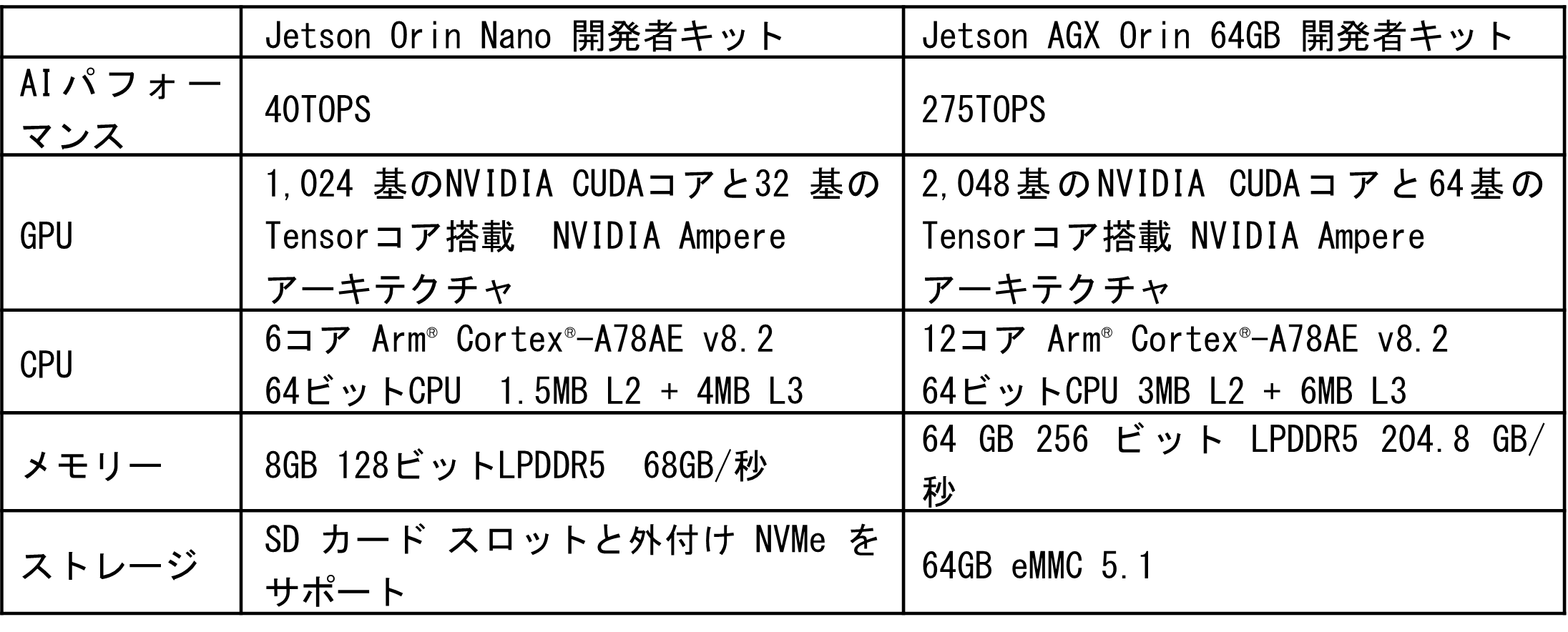 対象製品:NVIDIA Jetson Orin Nano 開発者キット、NVIDIA Jetson AGX Orin 64GB 開発者キット