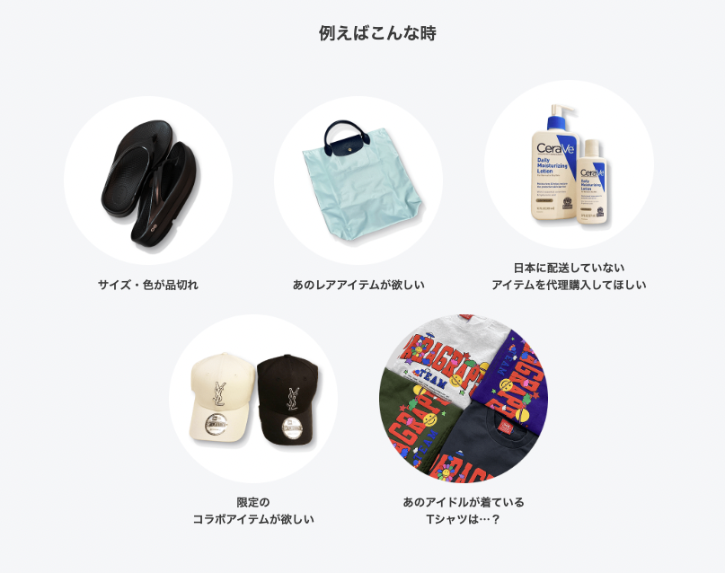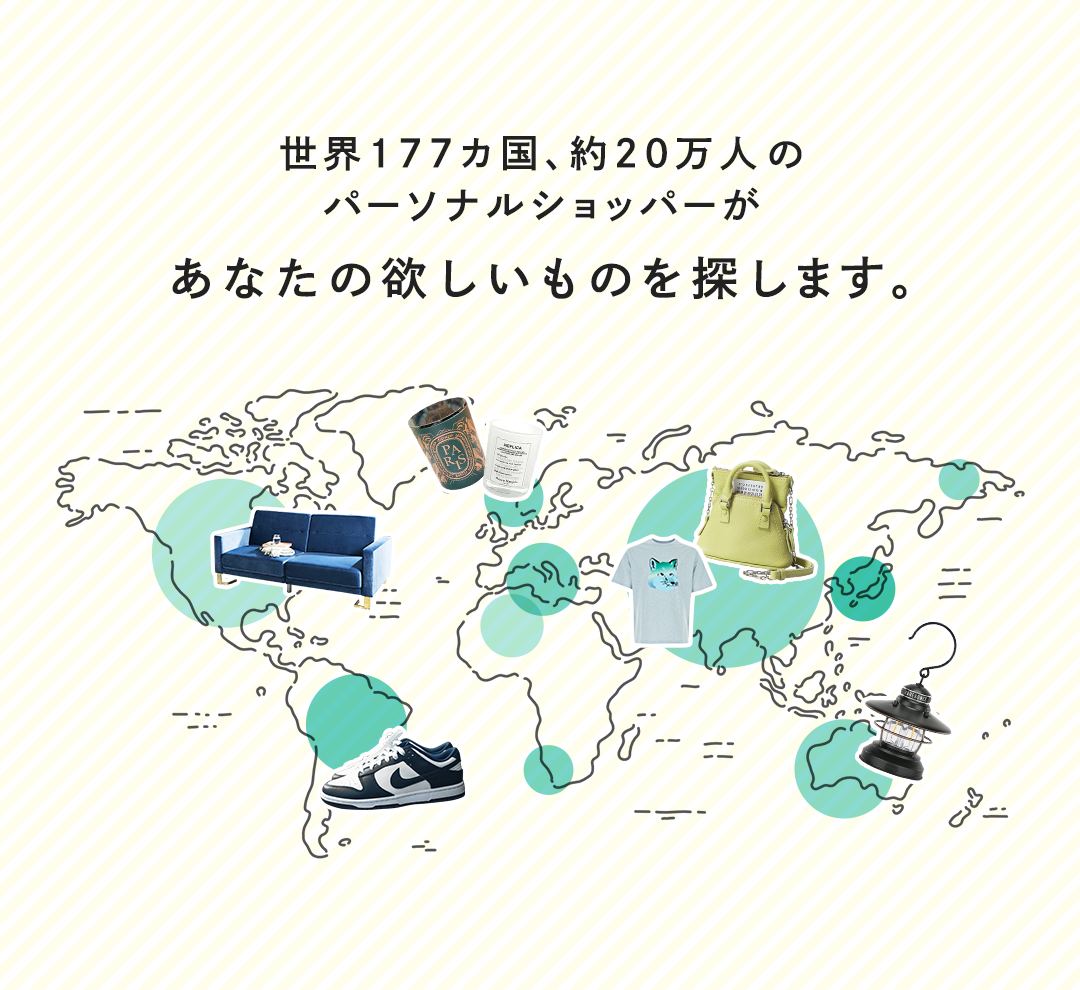 「世界中から探す」機能では、177カ国・20万人*のパーソナルショッパー(出品者)に向けて、お探しの商品を容易に発信することが可能です。