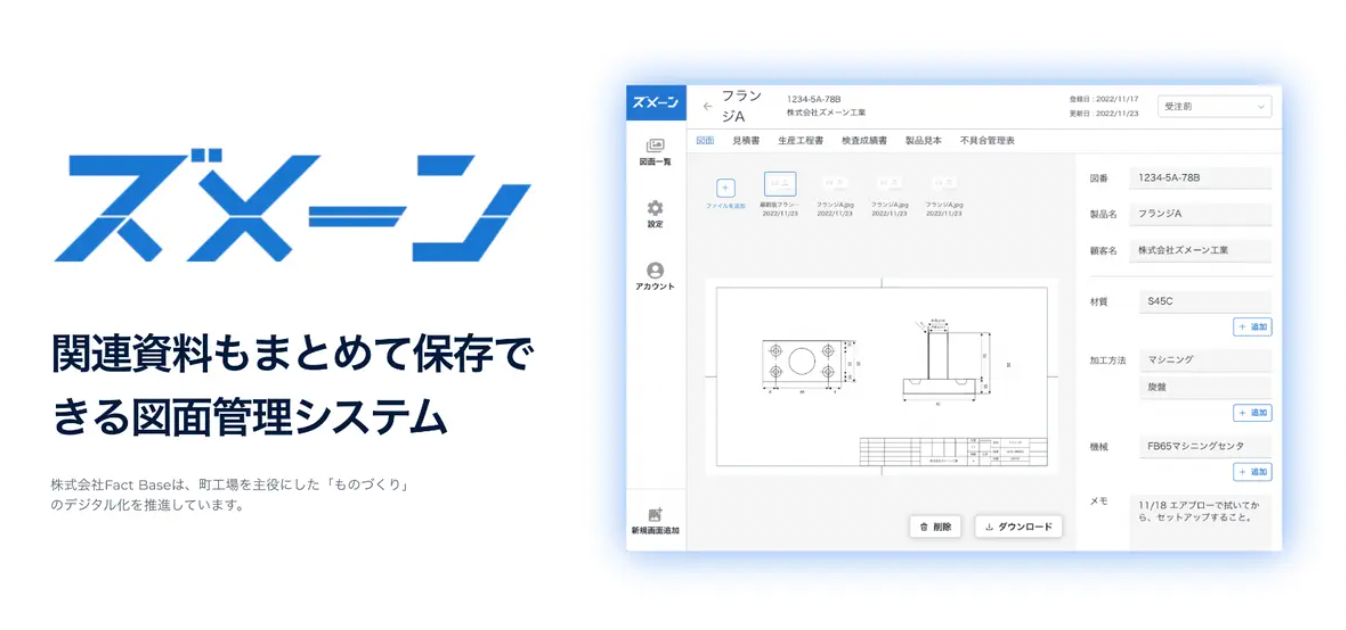 株式会社Fact Baseが提供する、図面と関連書類を紐づけてクラウド上で一元管理できる図面管理システム「ズメーン」は、2022年11月にサービス開始以降、順調に導入社数が増加し、このたび200社を超えるお客様に導入頂いたことをここにお知らせいたします。