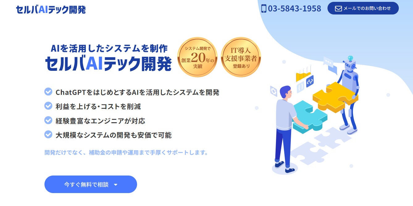 株式会社セルバでは、AI導入による業務効率化・AI関連事業の立ち上げを行う企業様への支援として、システム開発や補助金の申請サポートを行います。