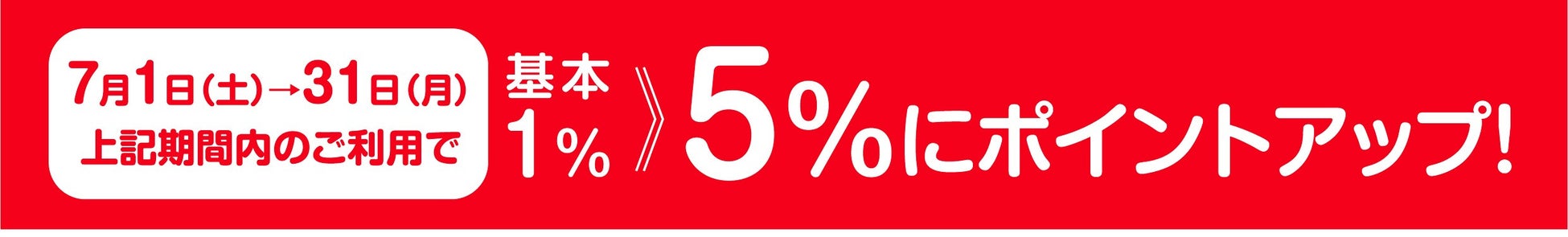 [銀行口座払い]がご利用可能となる7月1日(土)から、期間限定で「タカネオポイント」ポイントアップキャンペーンを実施いたします。期間中にお買物いただくと、5%(基本ポイント率:1%)のポイントがたまります。