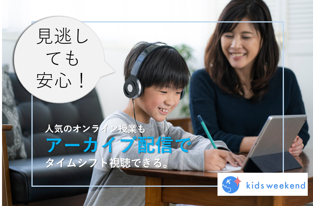 お申し込みいただいたアーカイブ配信授業は、規定の期間中であれば何度でも視聴することができます。お忙しい親御さんをはじめ、塾や習い事、お友だちとの交流等で忙しいお子さまに、ぜひキッズウィークエンドのアーカイブ配信をお役立てください。