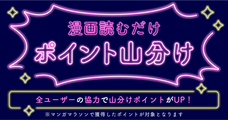 期間中全ユーザーが漫画を読んで獲得した総ポイント数と同数を、山分けして翌月に追加贈呈させていただきます。(マンガマラソンイベントのポイントをカウントいたします)