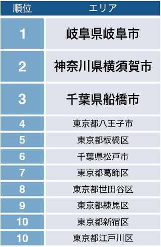 1位は「岐阜県岐阜市」、2位は「神奈川県横須賀市」、3位は「千葉県船橋市」でした。