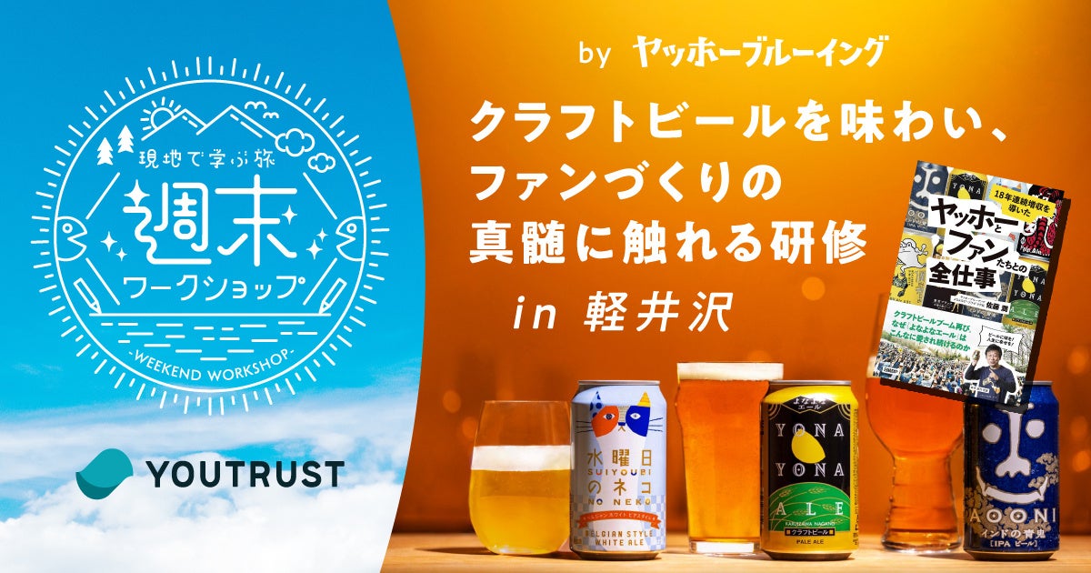 「-現場で学べる旅-週末ワークショップ」は週末の時間を使って、さまざまな場所を訪れることで、その場所でしか得られない一次情報を学ぶための研修企画です。第1弾の研修企画はヤッホーブルーイングと共同で「クラフトビールを味わい、ファンとの絆づくりの真髄に触れる研修 in 佐久醸造所(長野県)」を開催します。