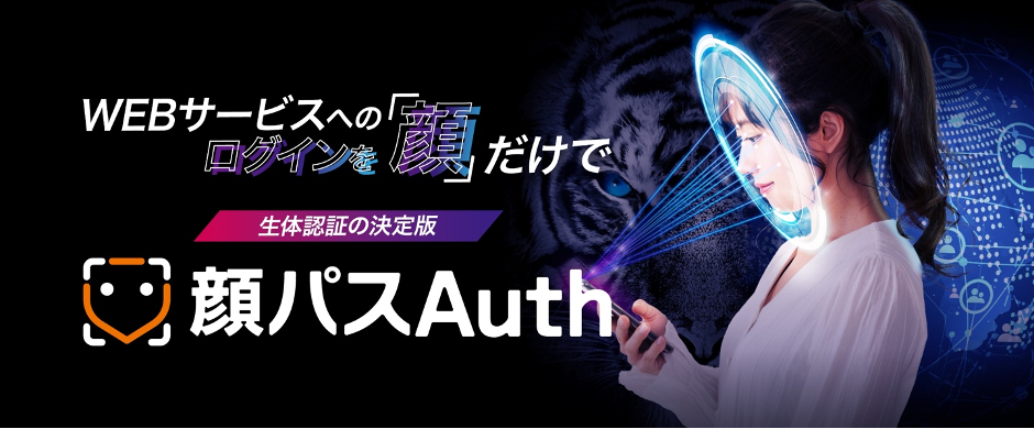 顔パスAuthとはwebサービスのログインを顔認証で行えるサービスです。専用アプリを入れる必要がなくブラウザーベースで顔認証を行い、ログインが可能です。