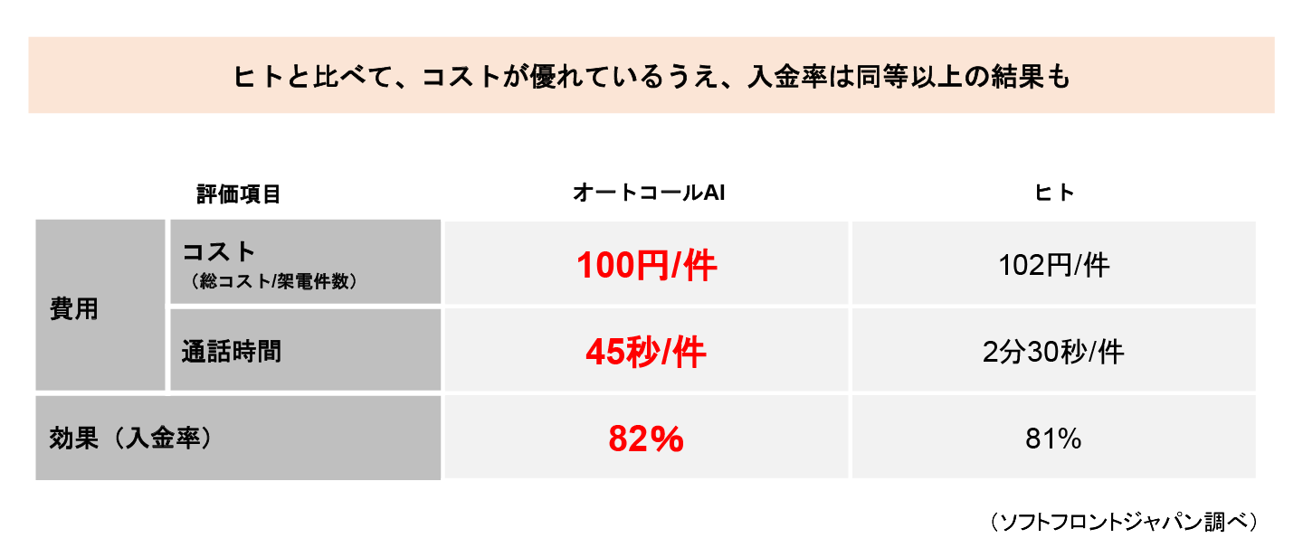 3.人が行う場合と比べ、コスト・入金率は同水準以上