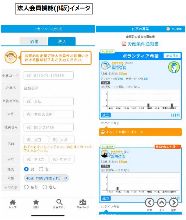 ・ 法人会員の従業員は掲載された求人に対し、「副業」「ボランティア」を選択して応募が可能(*企業により設定可能)
