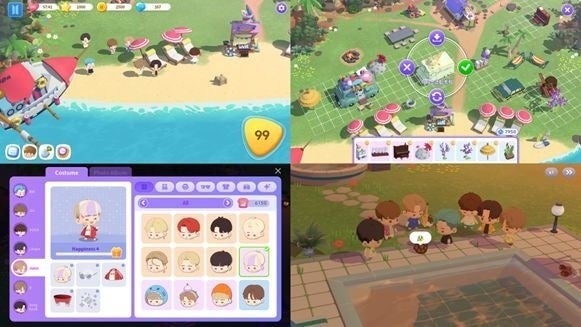ゲームを進めるにつれ、色々なデコレーションアイテムを利用してBTSキャラクターとゲームの舞台である島を、自分だけのユニークな空間としてデザインすることができます。キャラクターが着用できる、BTSメンバーごとの実際のステージ衣装やヘアスタイル、アクセサリーなどをモチーフにしたアイテムも多数。また、「BTS Island:インザソム」でしか見ることのできないメンバーの写真も収集することができます。